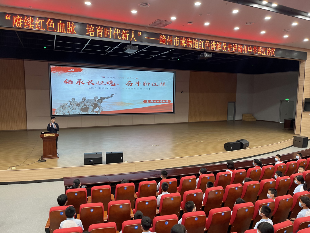 10月12日,日博365娱乐场_BET3365手机下载_best365网页版登录官网博物馆联合赣州中学(蓉江校区)开展了“赓续红色血脉 培育时代新人——赣博红色讲解员进校园”宣传活动,在活动中社教老师为学生们讲述了长征史及赣南红色故事。通过学习,让大家掌握了长征精神,了解赣南苏区人民为中国革命作出的重大贡献和巨大牺牲,让学生们崇尚红军乐于吃苦、勇于战斗、重于求实、善于团结的精神,自觉担起国家大任,坚定走向未来。