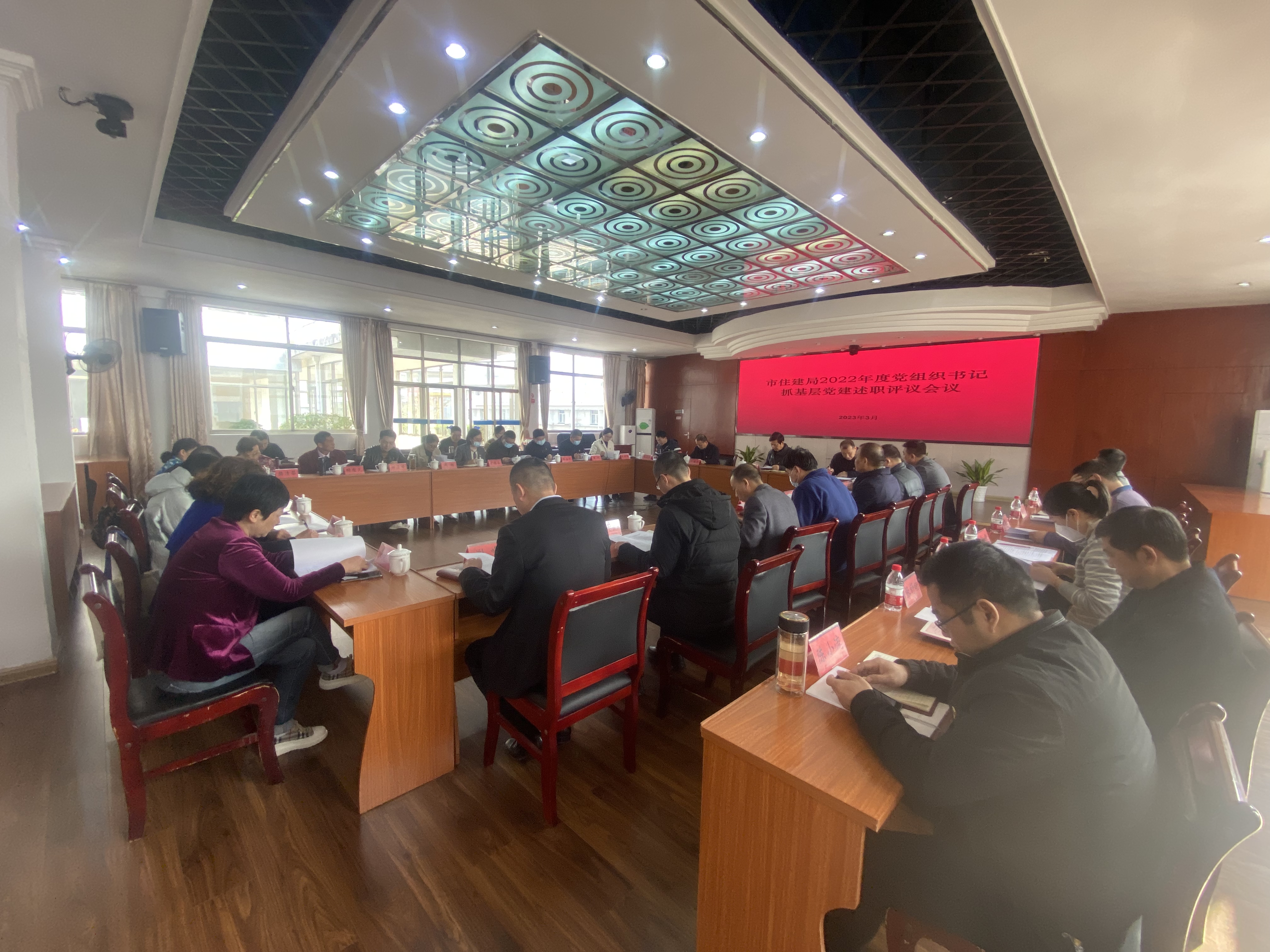 3月1日,市住建局召开2022年度党组织书记抓基层党建述职评议会议。在家局党组成员,局机关党委、机关纪委、行业综合党委委员,各基层党组织书记,部分党员和群众代表参加会议。